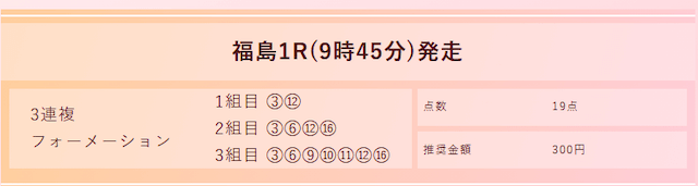 | '25/11/09/福島01R | ◯ | 115,400円 | 19,000円 | +96,400円 | 3連複 |