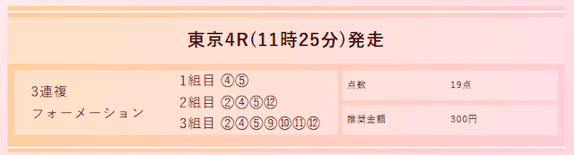 | '25/11/24/東京02R | ✕ | 0円 | 19,000円 | -19,000円 | 3連複 |