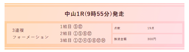 | '25/12/13/中山01R | ✕ | 0円 | 19,000円 | -19,000円 | 3連複 |