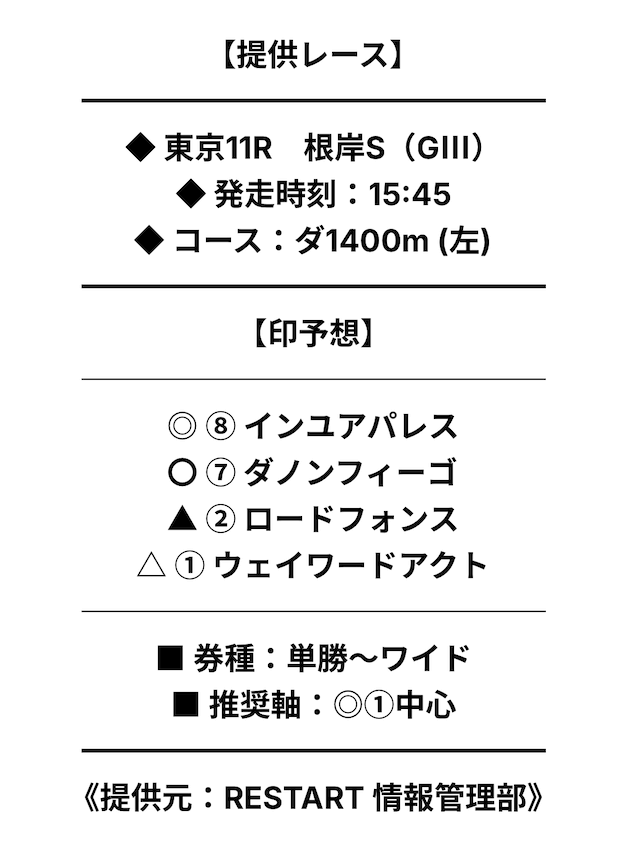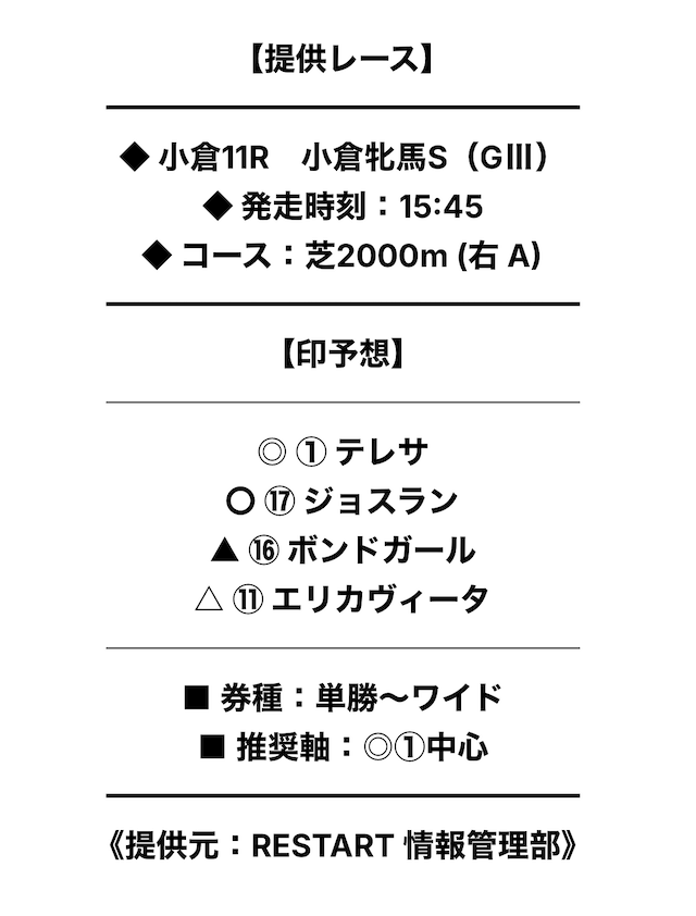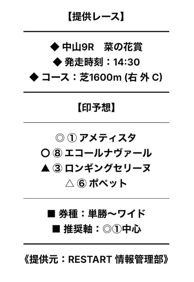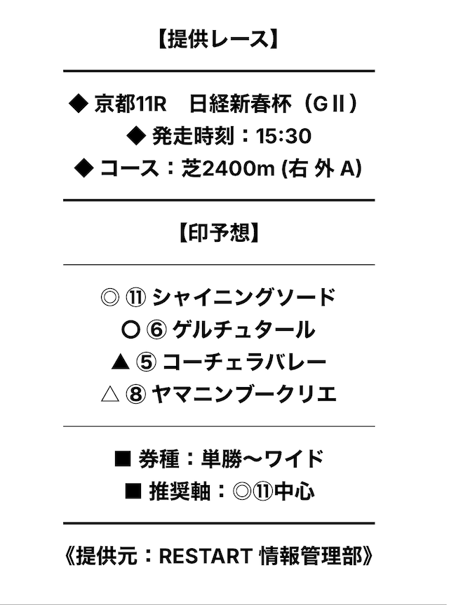 リスタートは、調教分析や統計データ、内部情報、独自アルゴリズムなどを活用しているサイトとのことで、予想の精度を多角的に追求しているそうです。