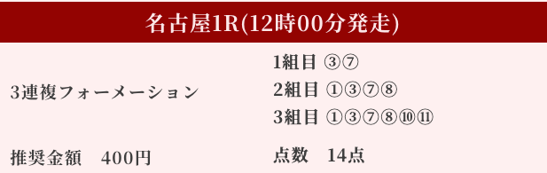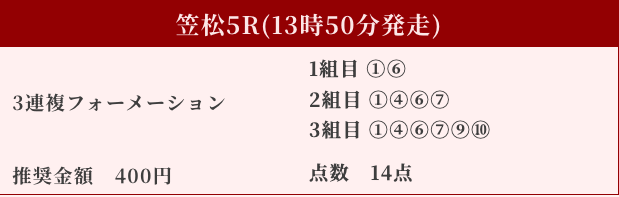 1, 4番人気を軸に据え、相手には上位人気から中穴まで幅広く選んだ構成となっています。