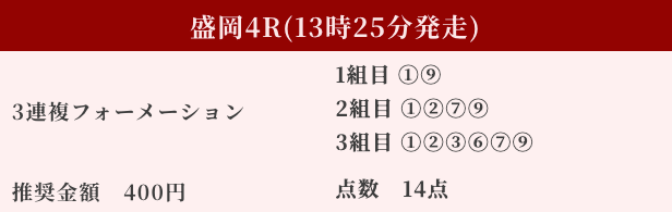 軸から1〜3番人気を外し、4,8,9番人気の3頭を据えるという大胆な決断。