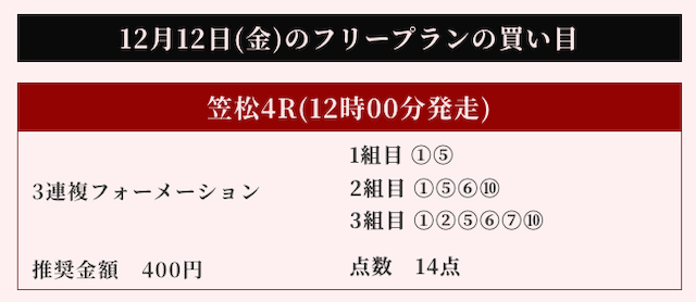 無料予想では的中率が課題でしたが、有料予想ではしっかり修正。