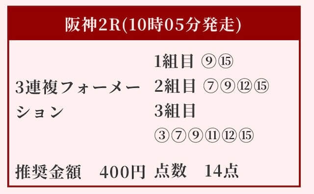 公開された買い目は、三連複フォーメーションで全14点。