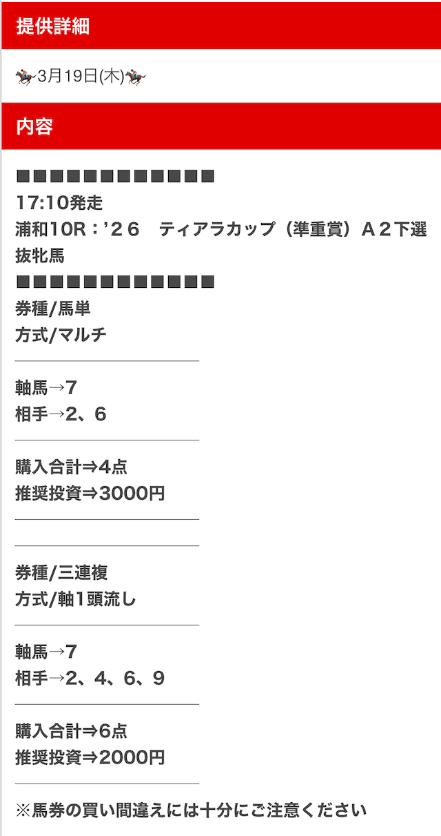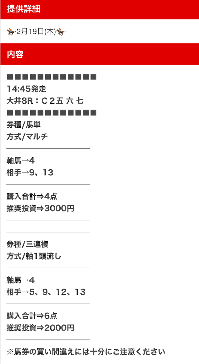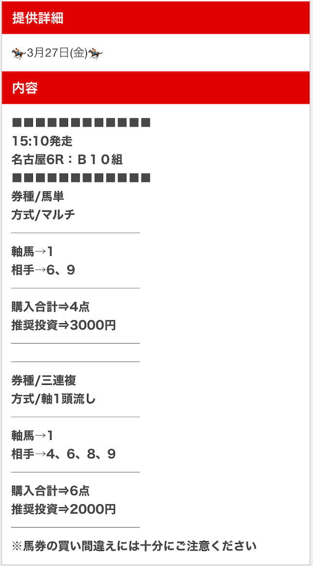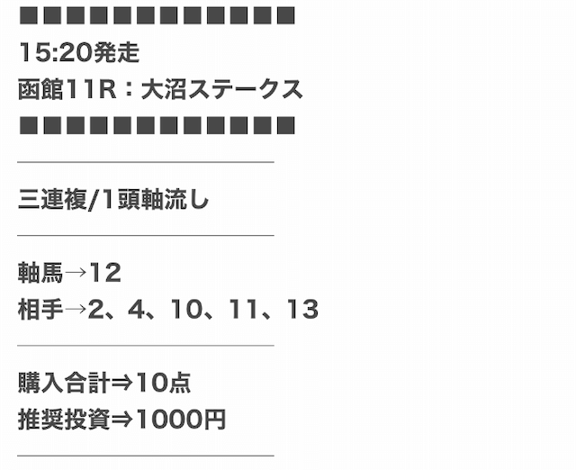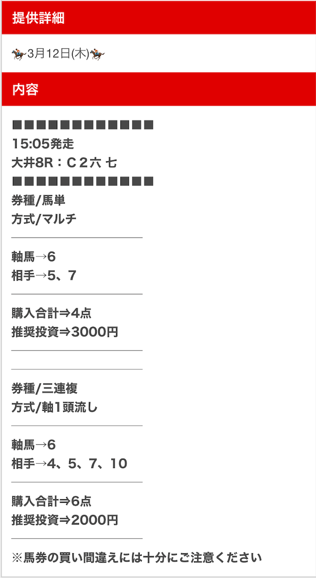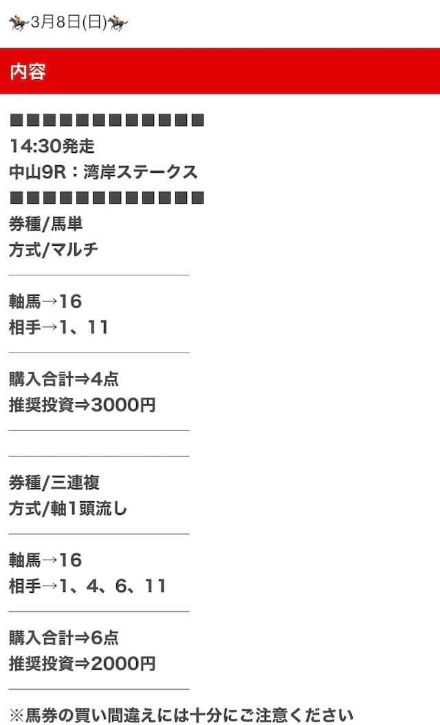 公開された買い目は以下の通りです。
