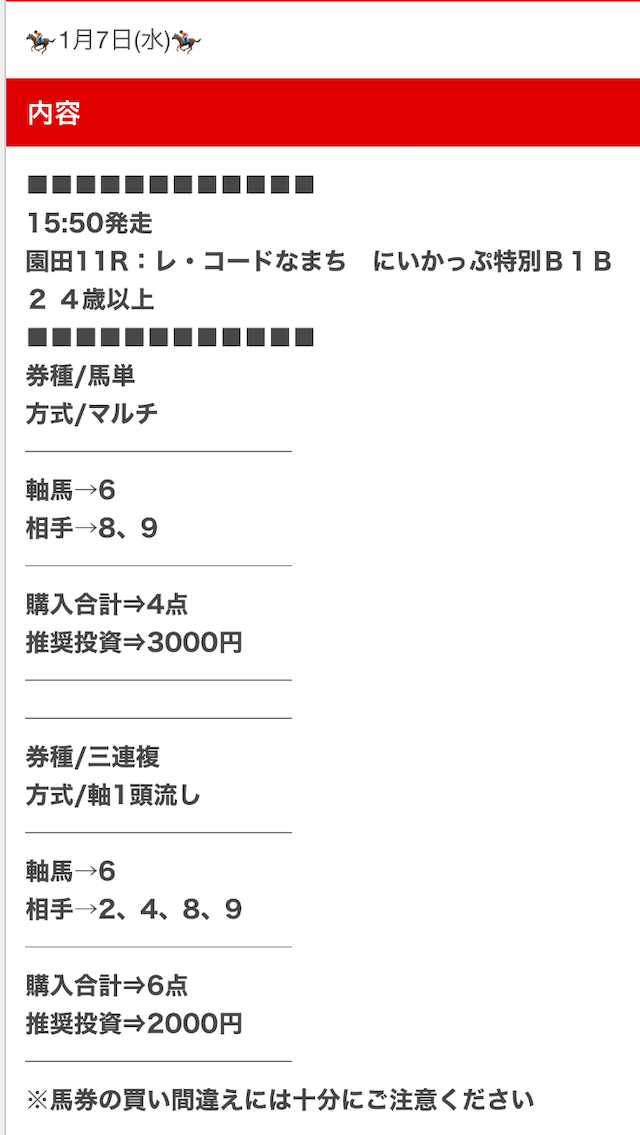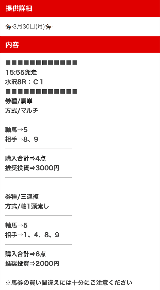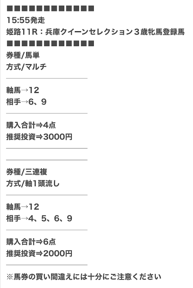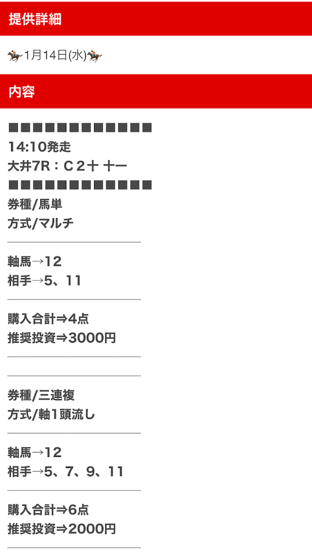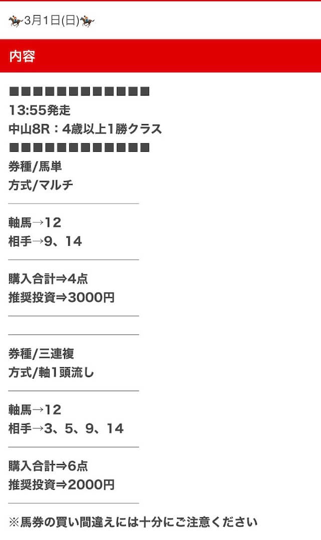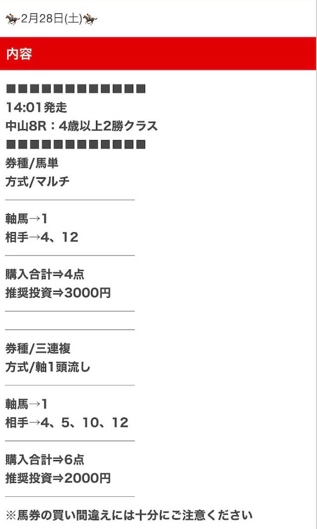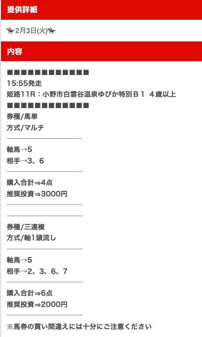 私が気になった口コミは、無料予想にしては珍しい複数券種での公開について。
