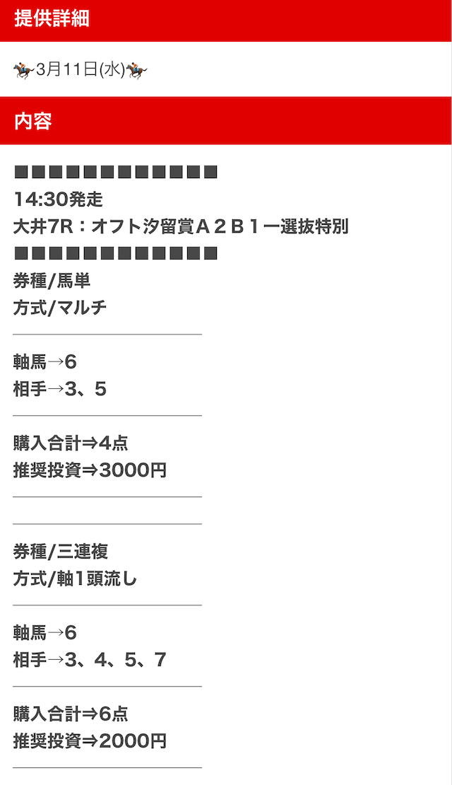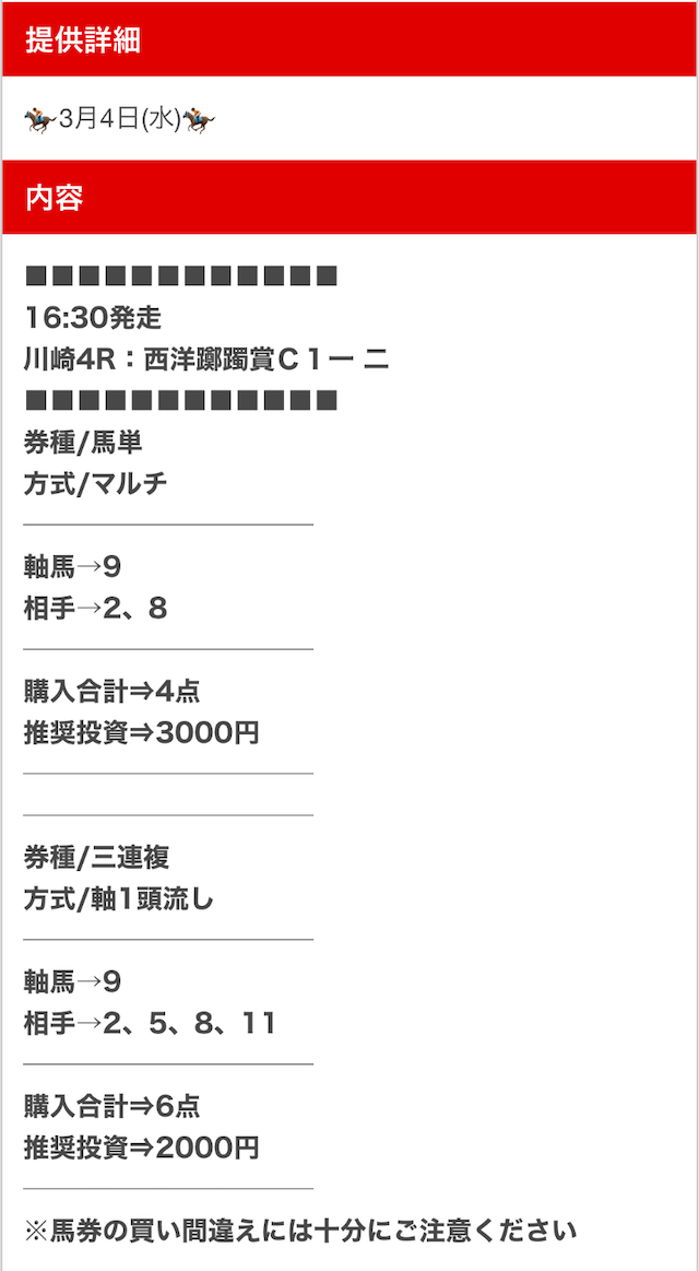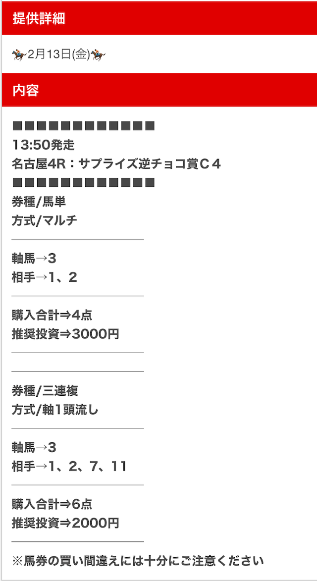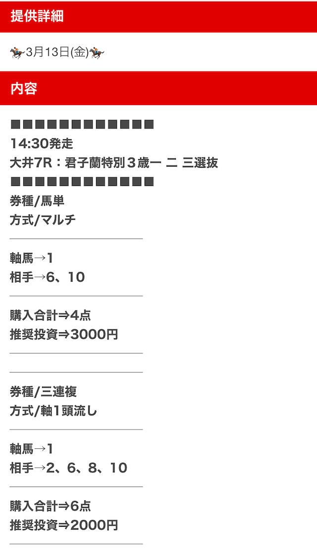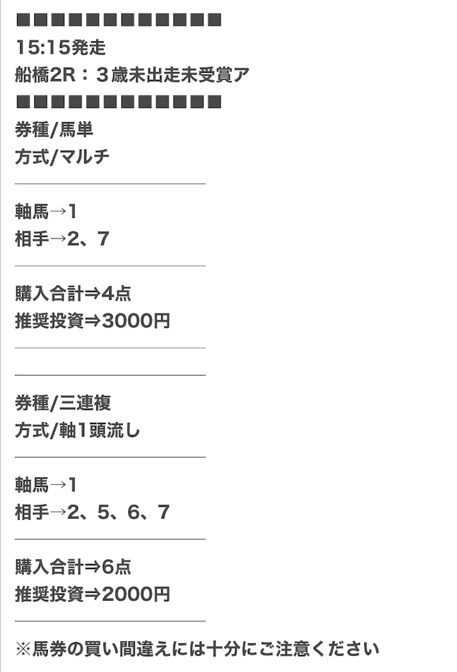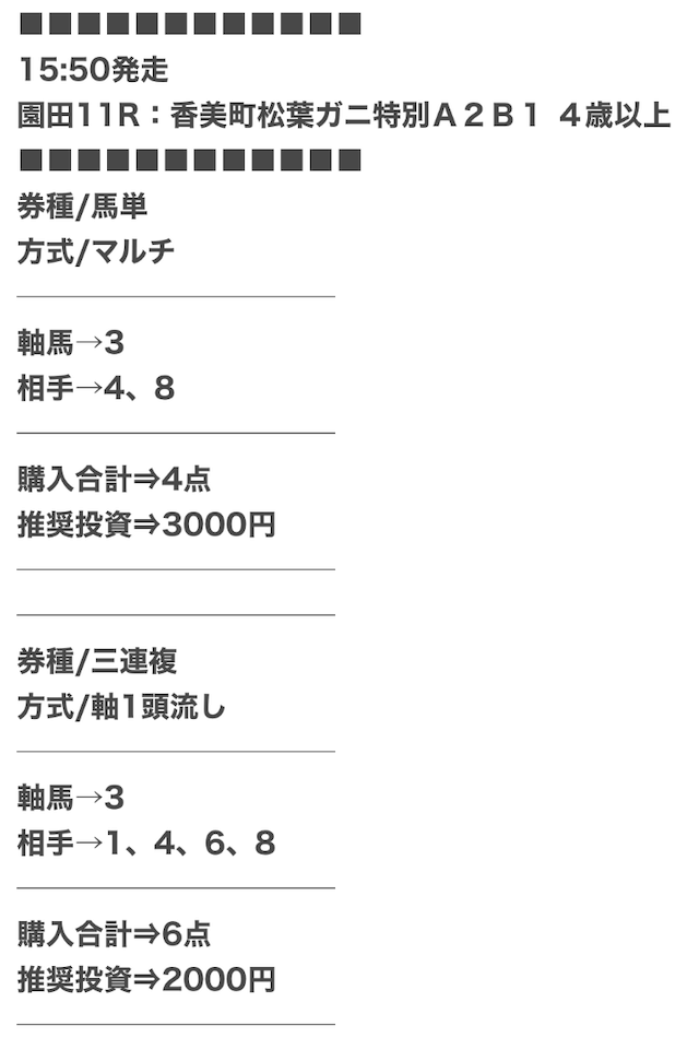 私が気になった口コミは、無料予想にしては珍しい複数券種での公開について。