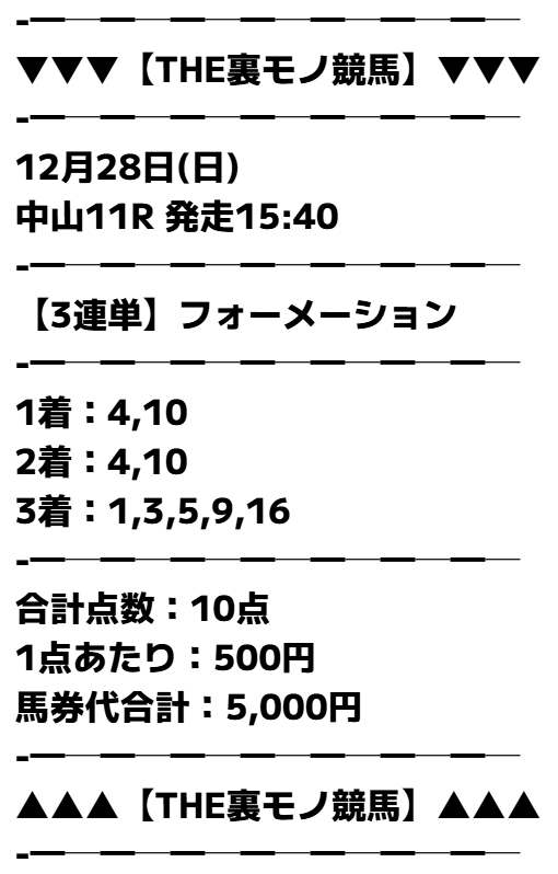 中山11R - 結果三連単4-10-9情報