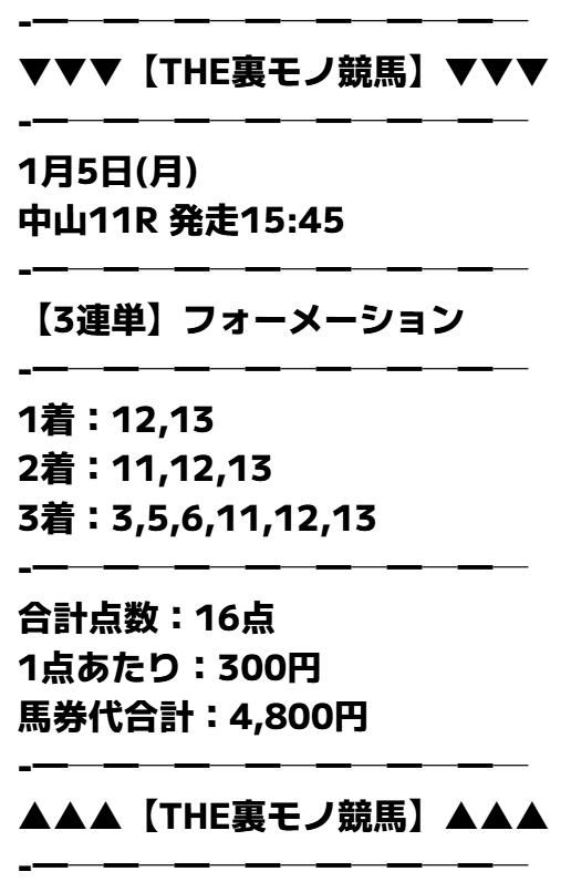 | 2026/01/25/ 中山 | | 3,000円 | 5,200円 | +2,200円 |