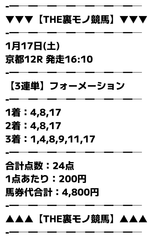 京都12R - 結果三連単8-17-1