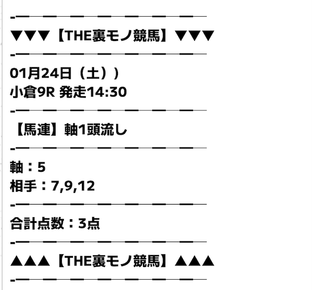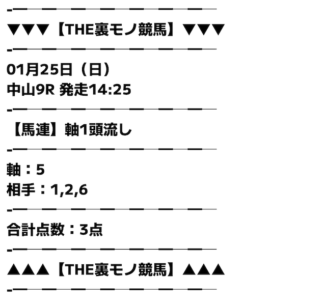 無料予想でもしっかり当たるのが素直にすごいと思った。点数が少なくて馬券代も安いから、無理なく続けられるのが良い。