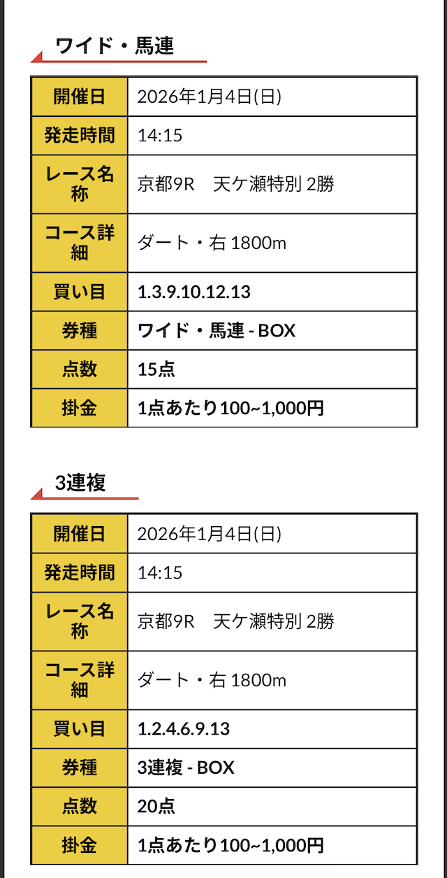 あとは、買い目がしっかりと公開されるのか待っていきたいと思います。