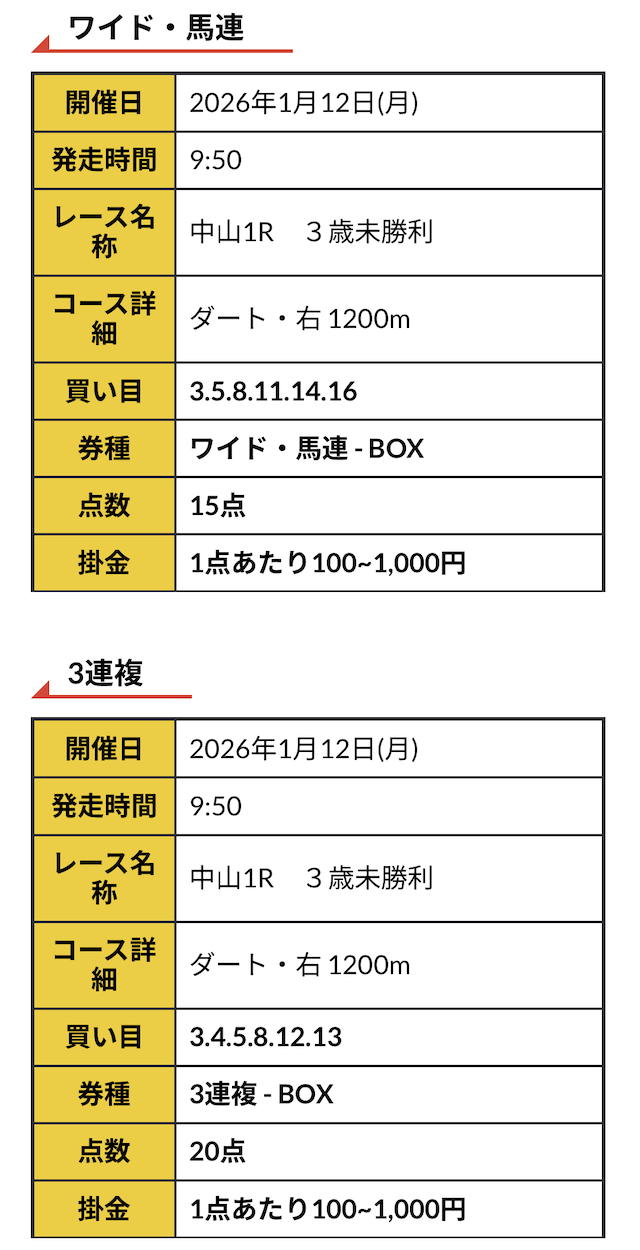 | 2026/01/12/ 中山 | | 50,000円 | 182,900円 | +132,900円 |