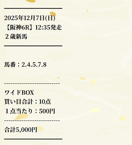 続いて、競馬予想サイトのメインコンテンツ有料予想に参加。