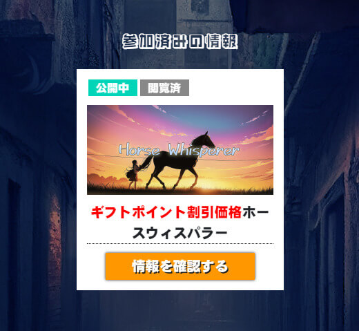 皆さんもぜひ、ポイントを有効活用し「ホースウィスパラー」に参加してみてください。