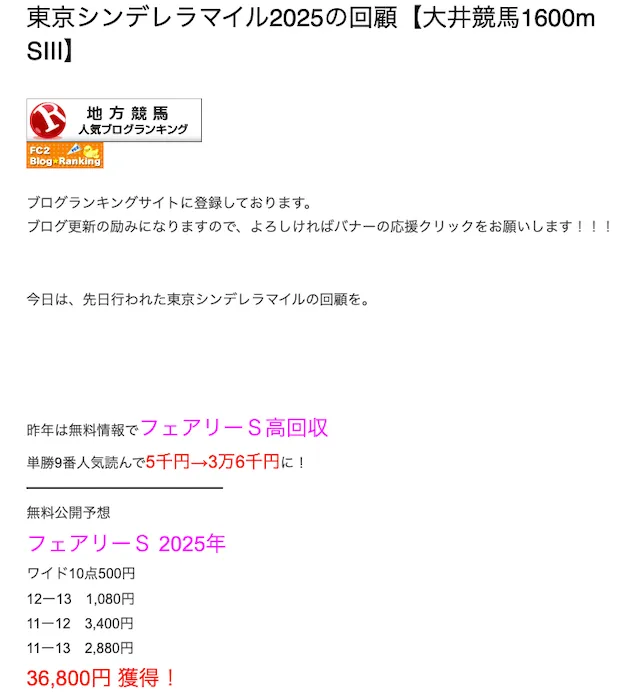競馬歴20年以上のサラリーマンが一攫千金を目指して、南関東レース・交流重賞の穴予想や詳細回顧を無料で提供しているブログです。