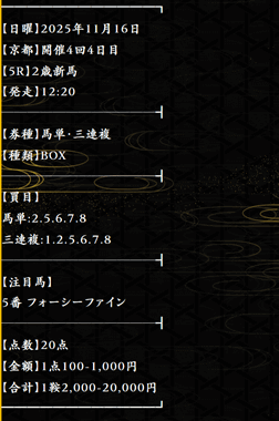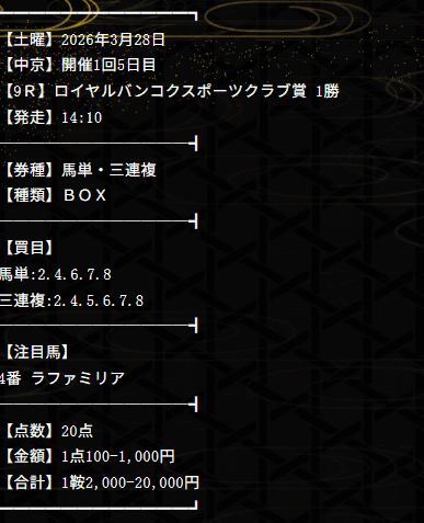 中穴馬を選んでいることから、単に高配当狙いで選んだわけではないよう。