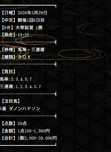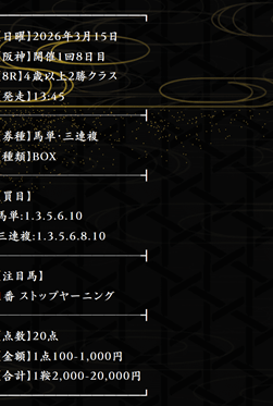 お試しコンテンツである無料予想でも良い結果を残してくれただけに、有料情報にも期待が持てそう。