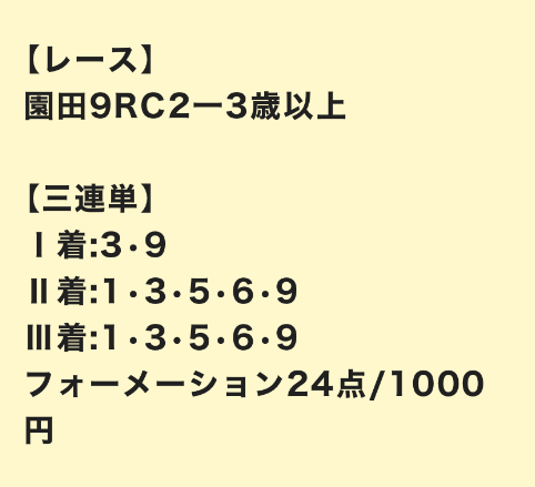 1レース目同様、三連単の中でも2種類の金額で買い目を公開しました。