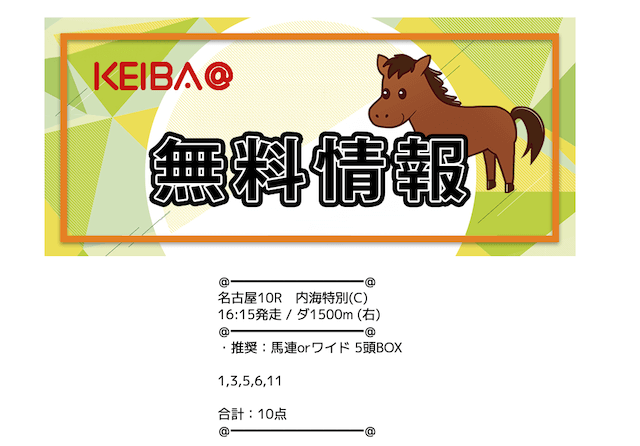 買い目は、前日夕方から当日朝に公開されるようです。