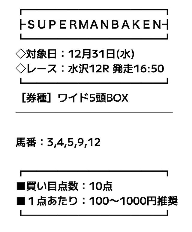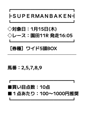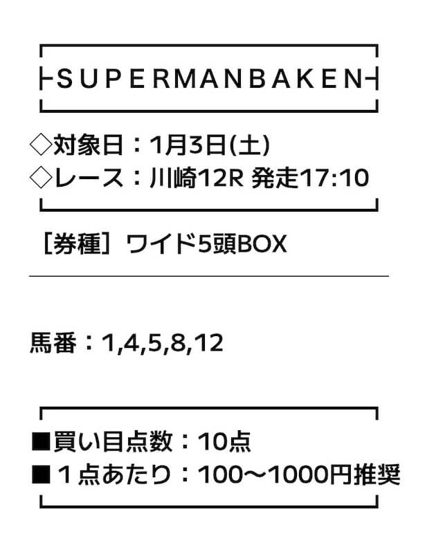 スーパーマンバケンの検証まとめ- 無料予想でも高配当が当たる