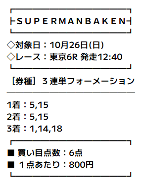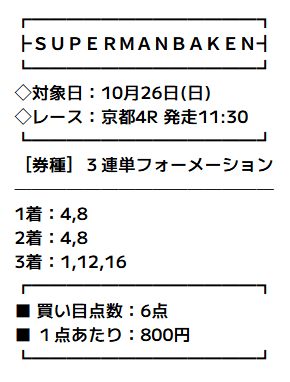 対象のレースは、2025年10月26日の京都4R。買い目はこちらです。