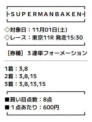 東京11R - 結果三連単8-3-15