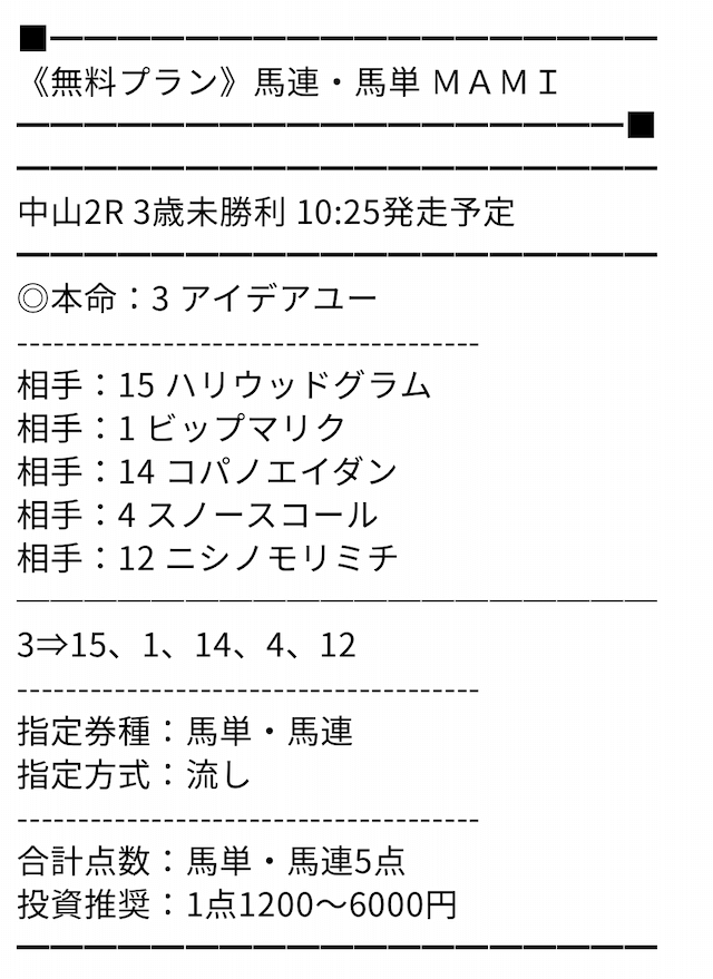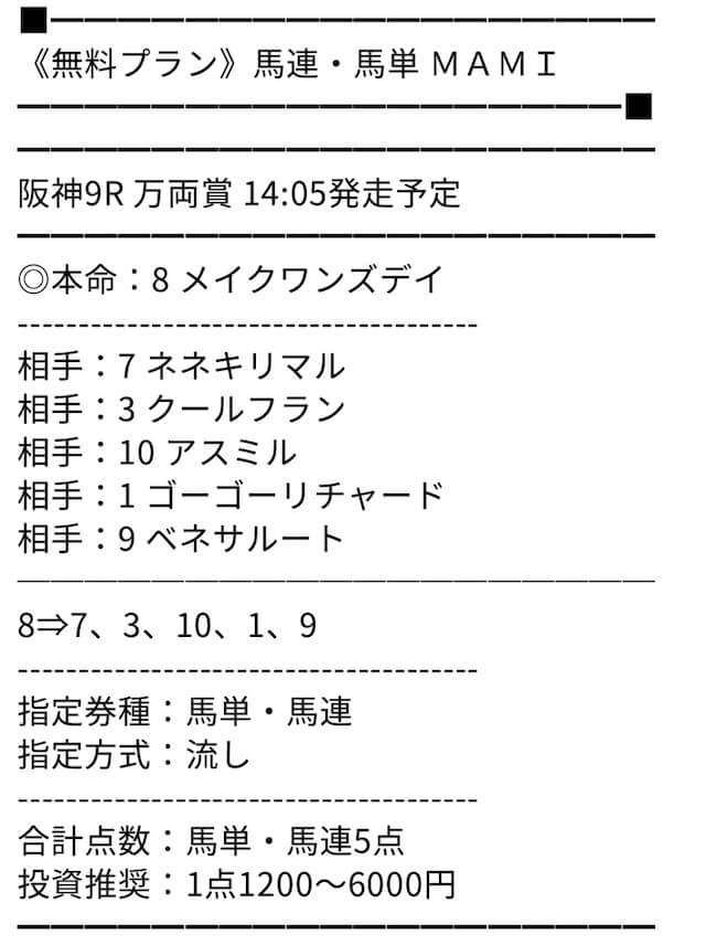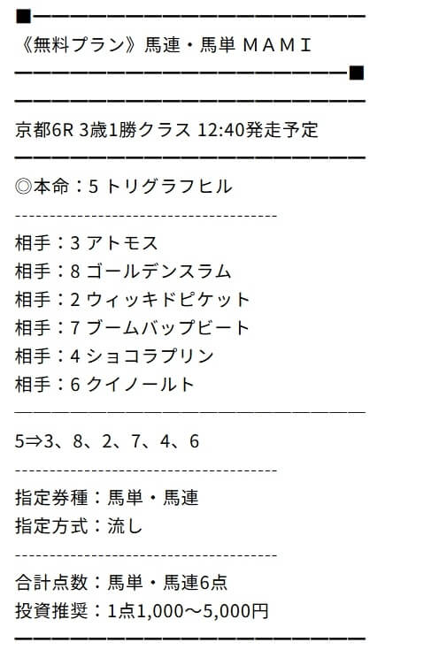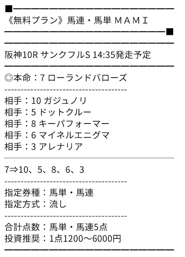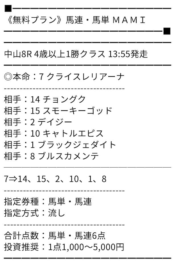 MAMIさんの予想はホントに的中率高いです。