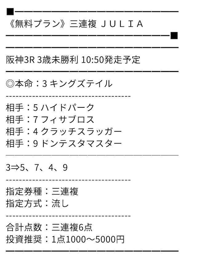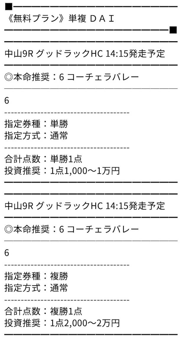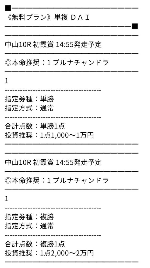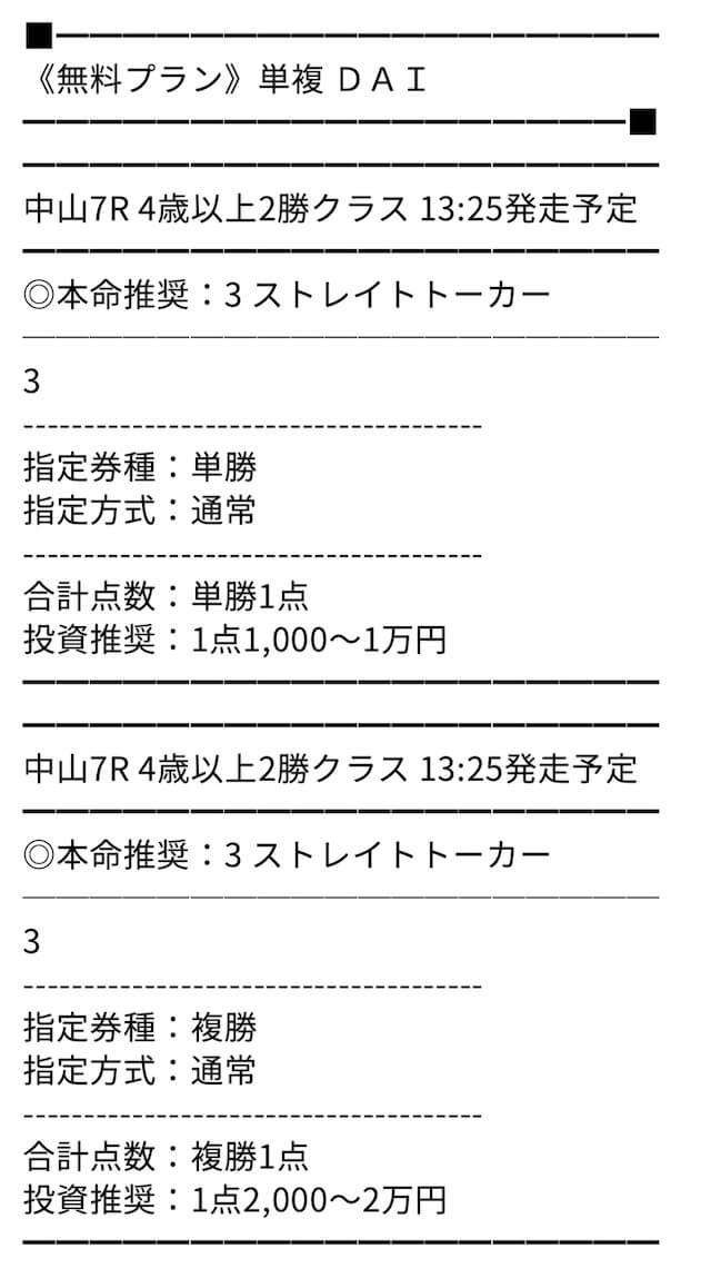 無料予想でもかなり当たることが多く、点数も絞っているそう。