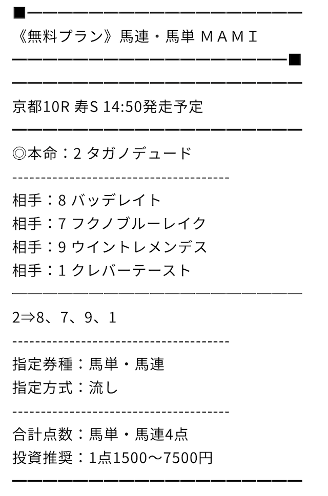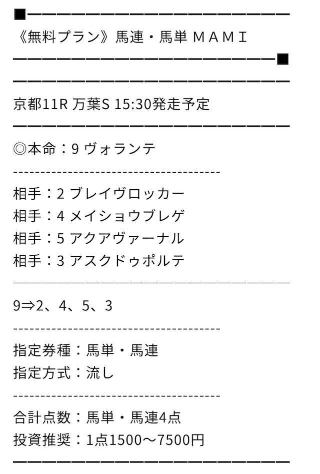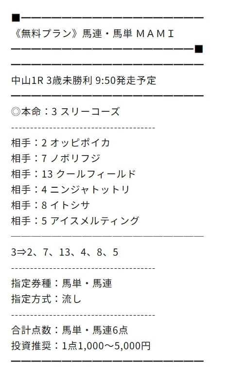 今回もMAMIさんの無料プラン的中しました。