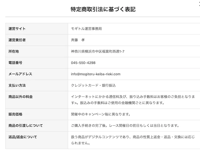 | メールアドレス | info@mogitoru-keiba-rieki.com |
