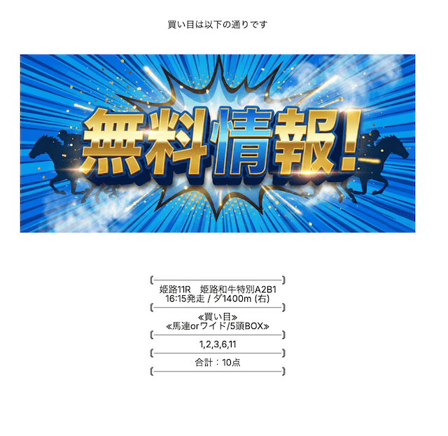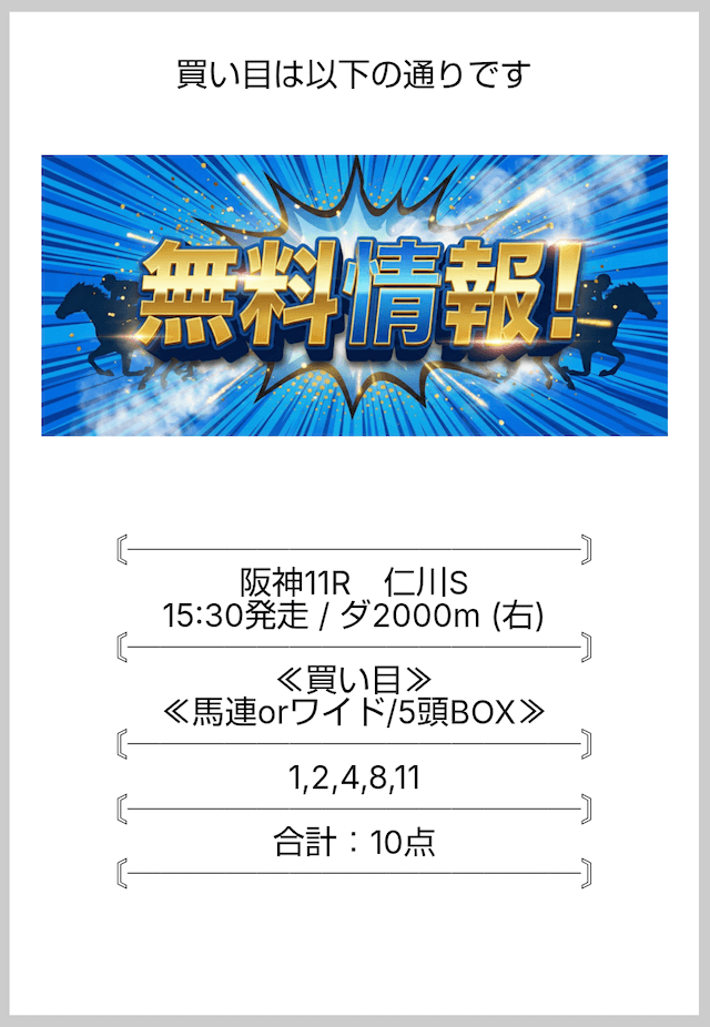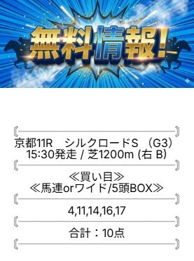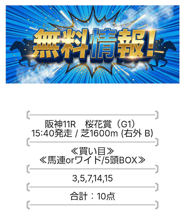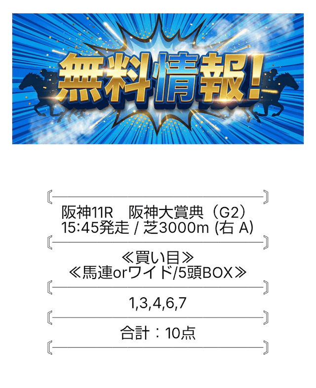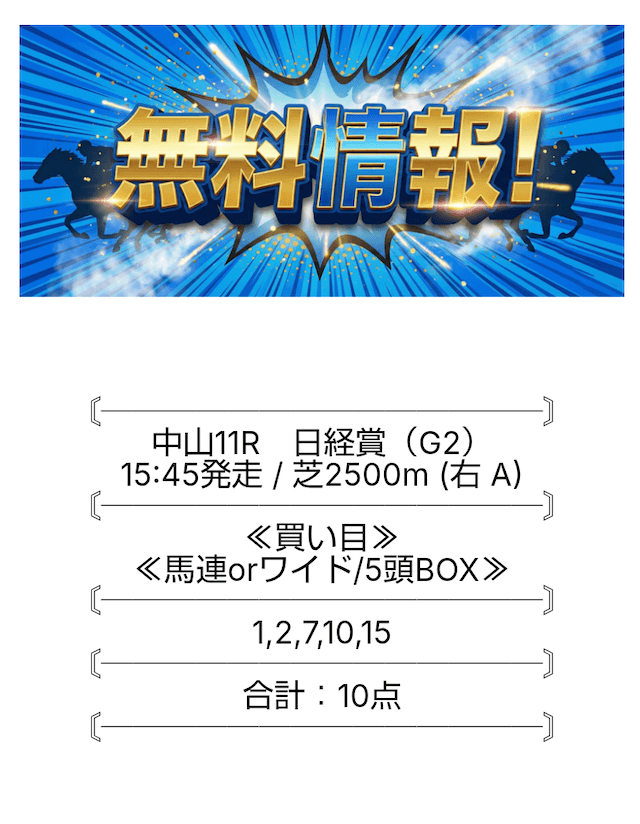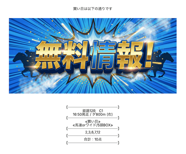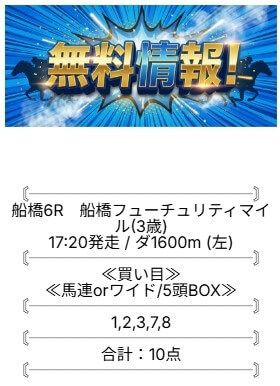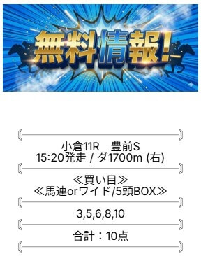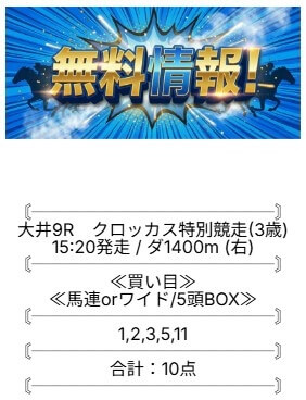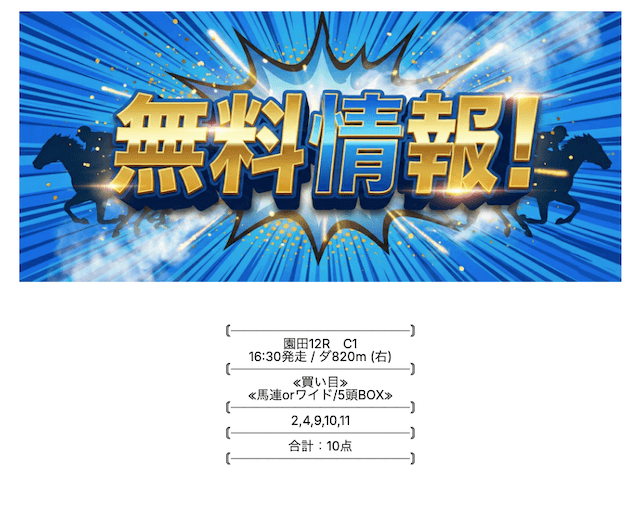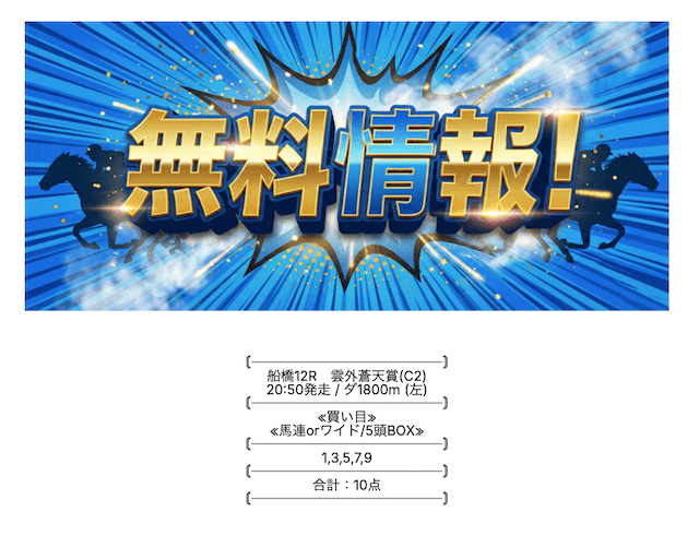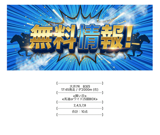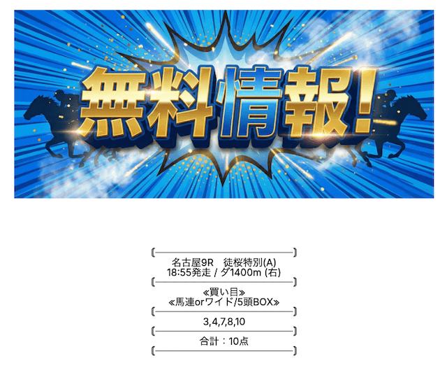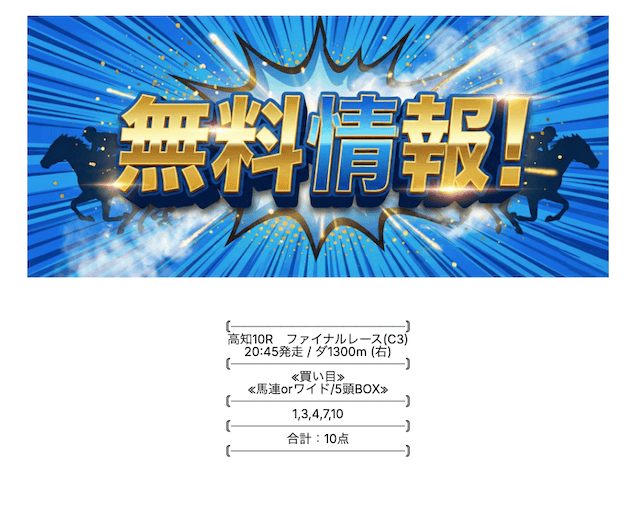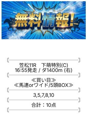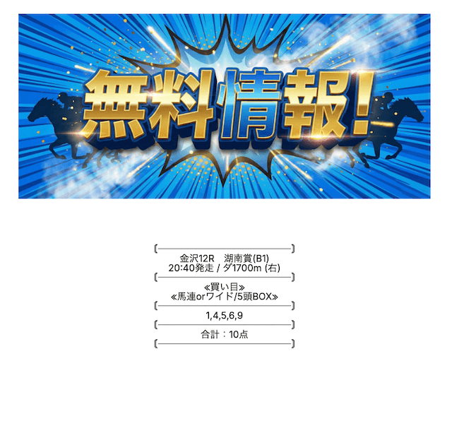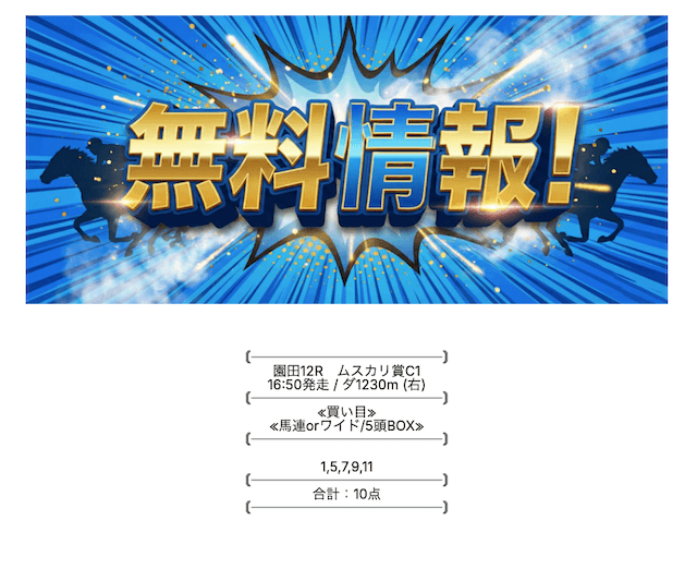 無料予想は、土日1鞍ずつ予想が公開されています。