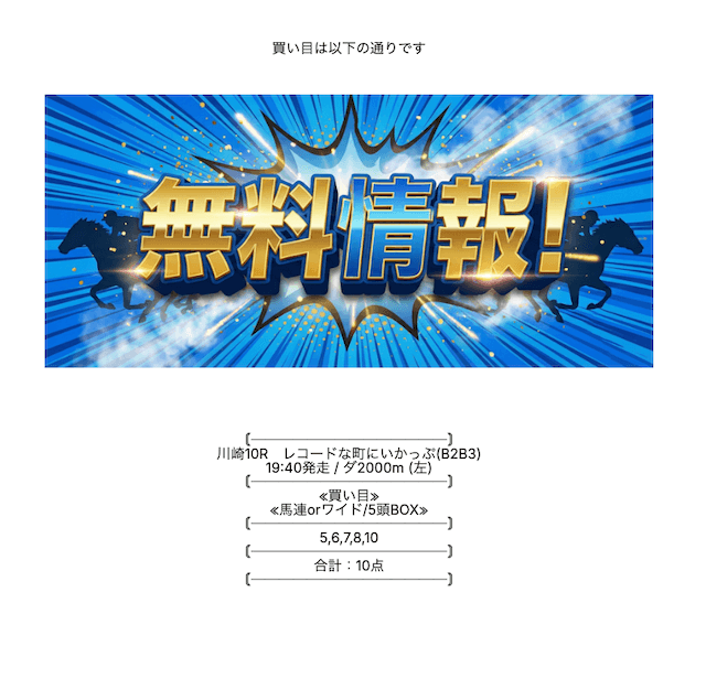 | 的中実績 | ⭕️ | ドメイン以前の的中実績はなし このことから、掲載している的中実績が捏造の可能性は低い |
