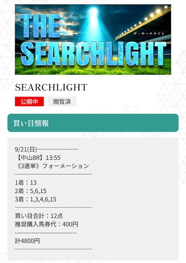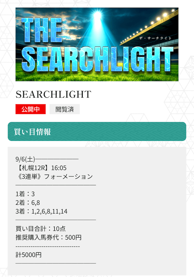 有料プランの高配当だったレースを紹介!(THE SEARCH LIGHT)