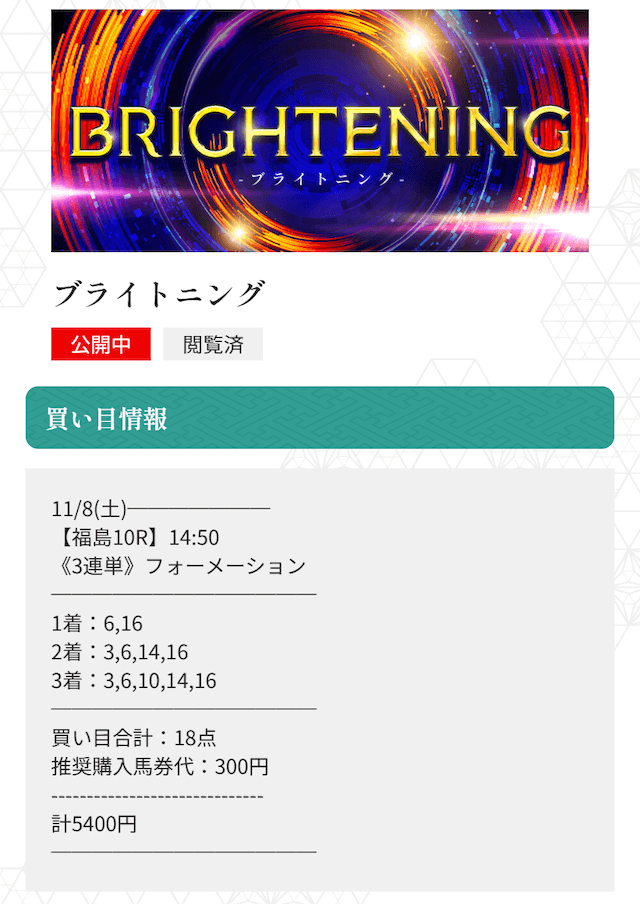 | 的中実績 | ⭕️ | 的中結果が明確に公開され、信頼できる内容 |