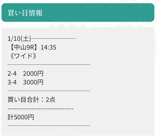| 2026/01/10/ 中山 | | 5,000円 | 5,100円 | +100円 |