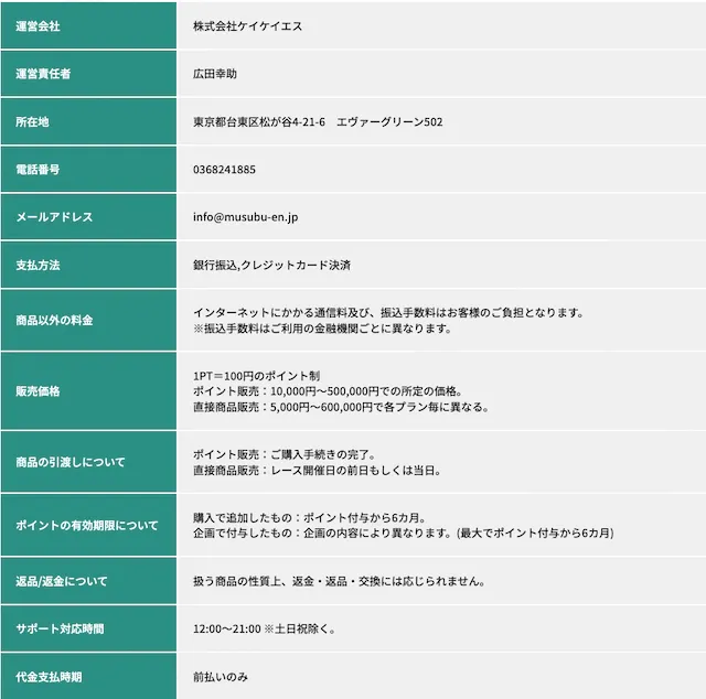 | メールアドレス | info@musubu-en.jp |