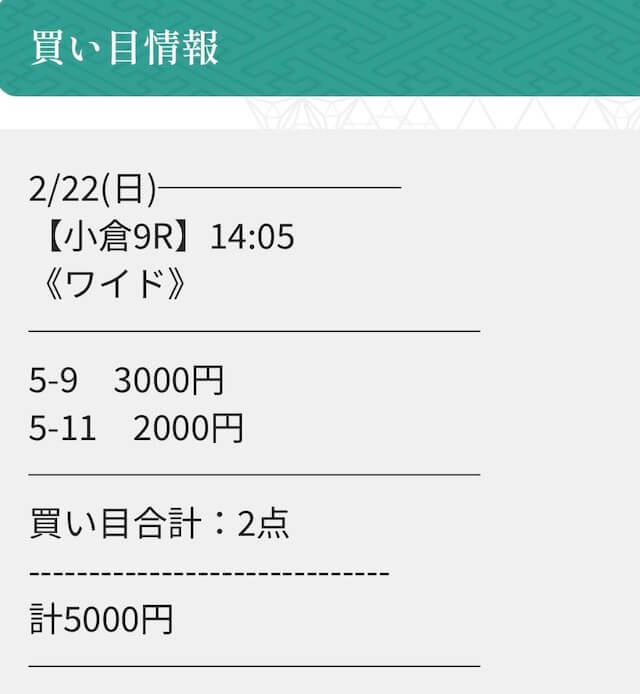 | 2026/02/22/ 小倉 | | 5,000円 | 5,100円 | +100円 |