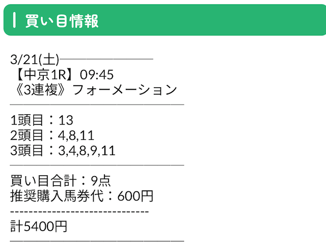 初戦と同様の券種で予想を公開しました。