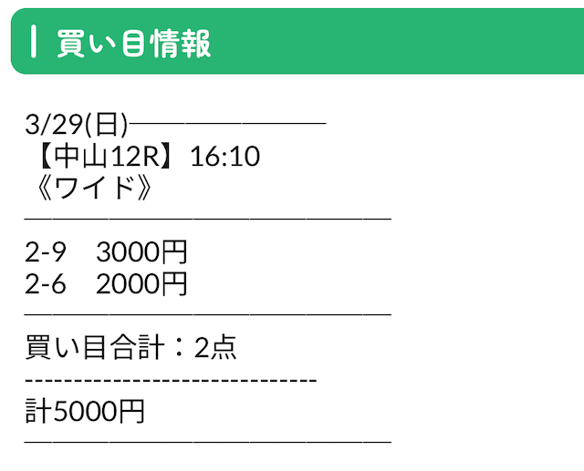 買い目は以下の通りです。