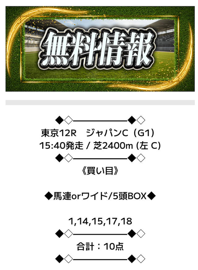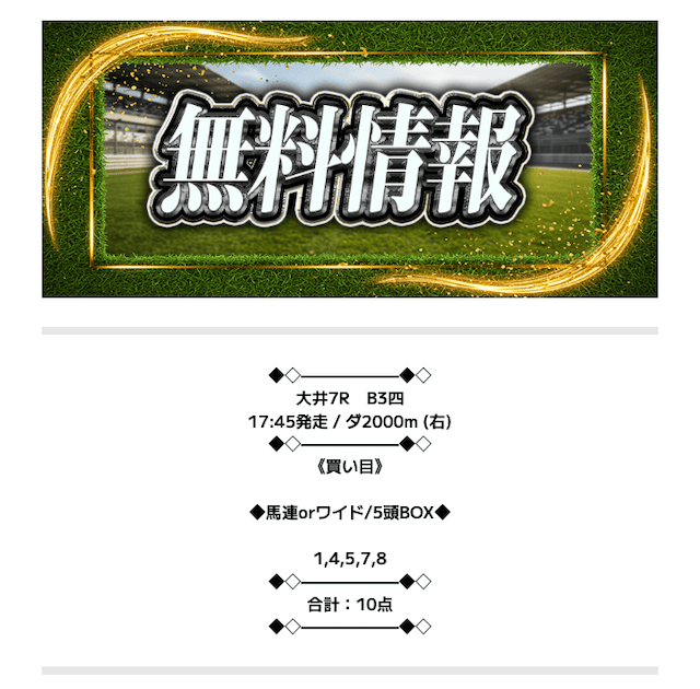 競馬で結果を出したい方は、まずは無料予想から試してみましょう!