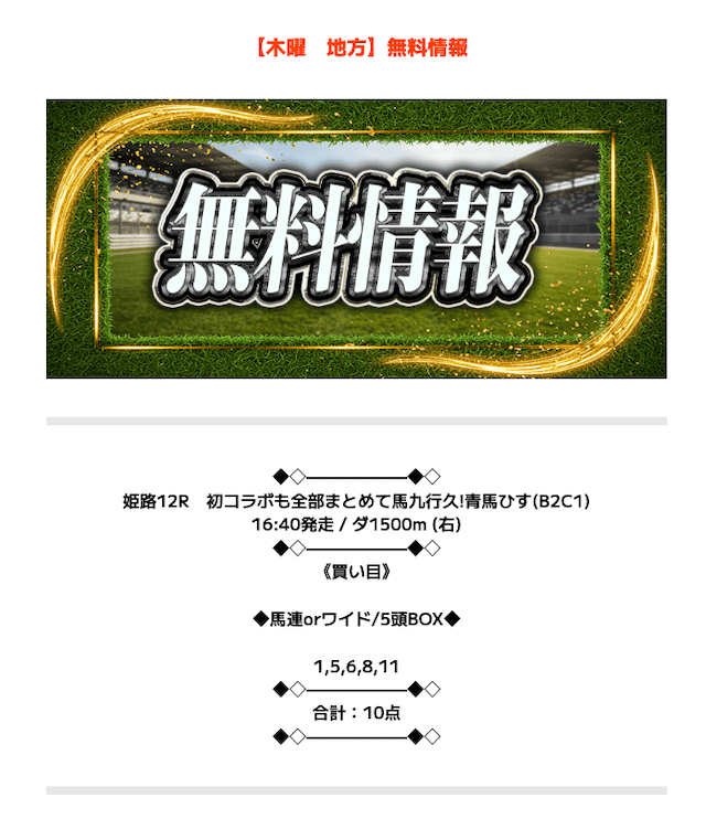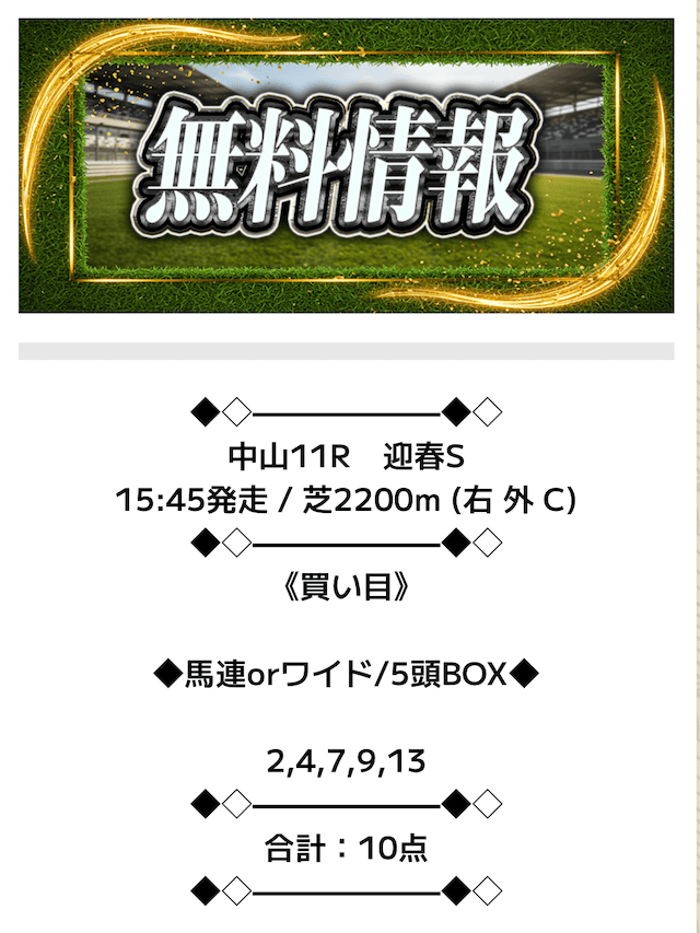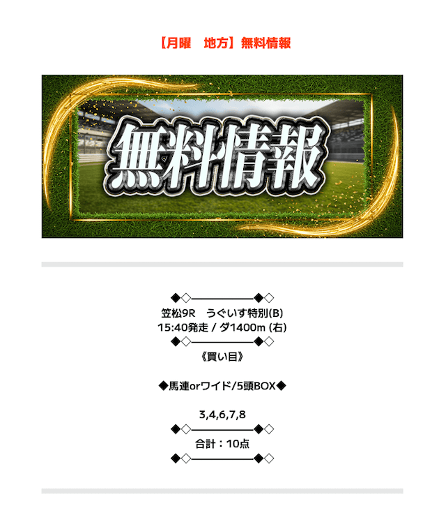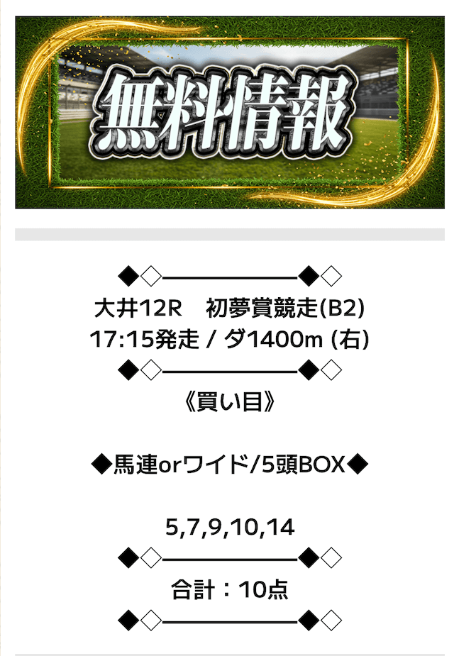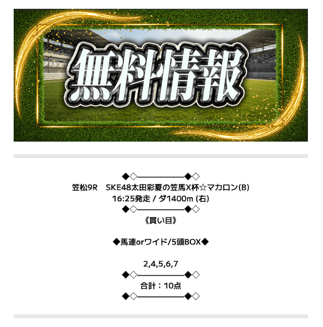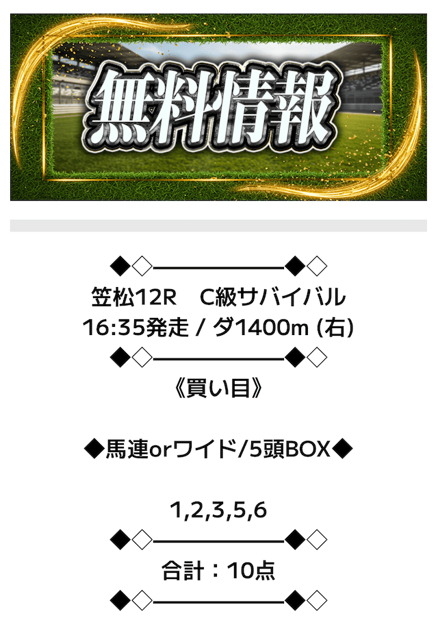 無料情報でも結果が出せるので、有料情報も気兼ねなく楽しめます。