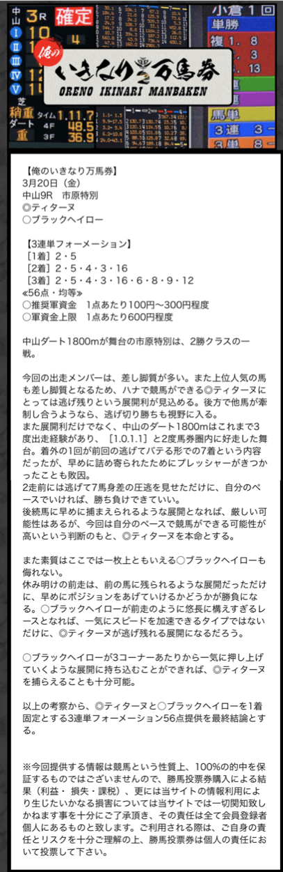 プラン名が「いきなり万馬券」なだけに、あくまで高配当を狙った予想だったのでしょうか。