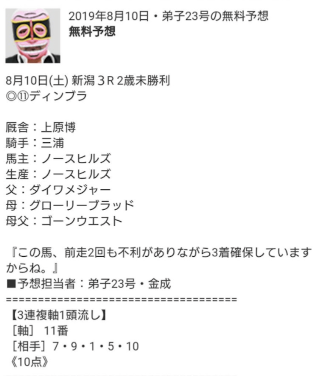 私が参加したのは、2019年8月10日に公開された無料予想。