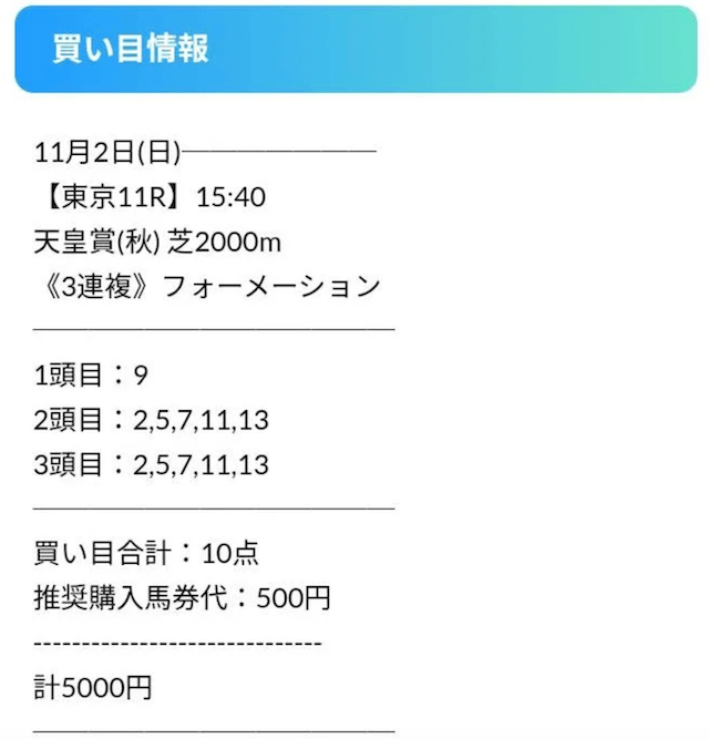 さらに注目したいのは、18頭立てという多頭数の中、3連単で買い目点数はわずか10点に絞られているという点。