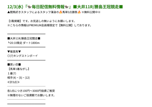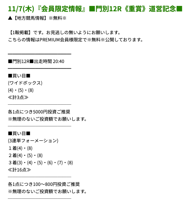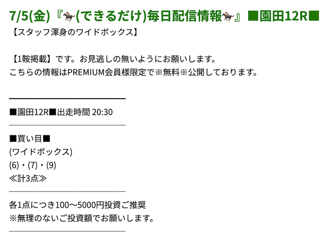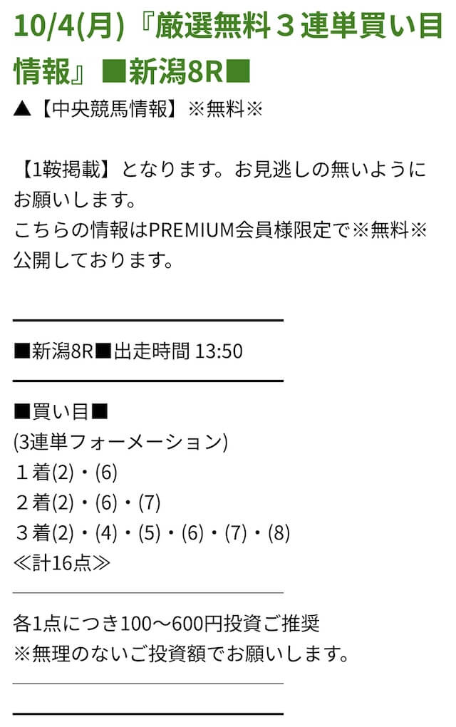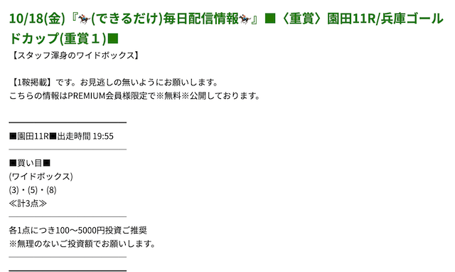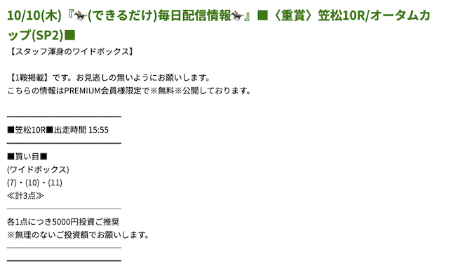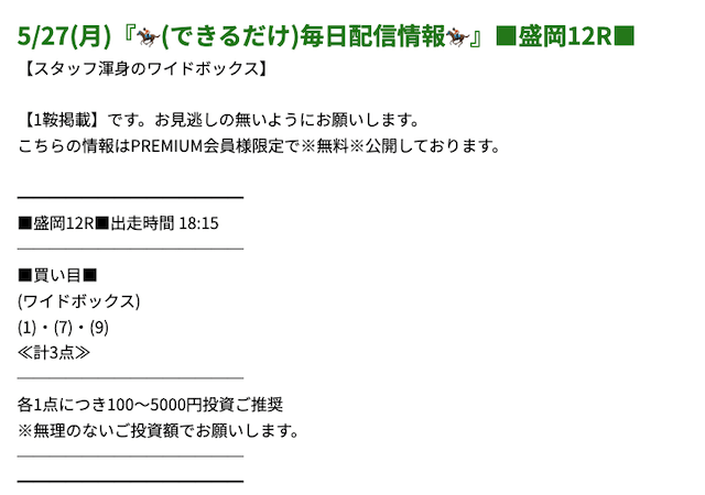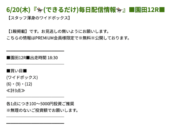 当たる予想を公開しリピートしてもらう自信があるからこそ、この制度設計ができるのでしょう。