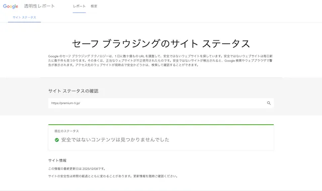 | サイトの安全性 | ⭕️ | Googleセーフブラウジングで問題なしと判定 登録後も個人情報が流出した形跡なし |