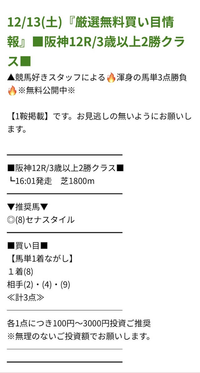 約2ヶ月間、毎週のように有料予想を購入しましたが、まさかの無敗を維持。