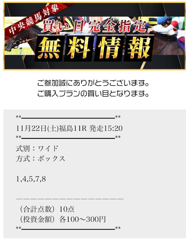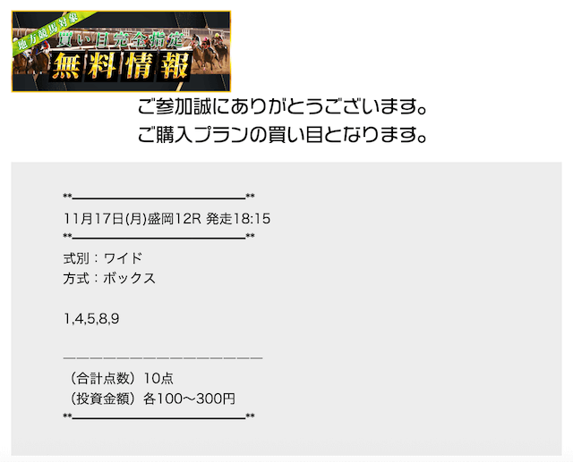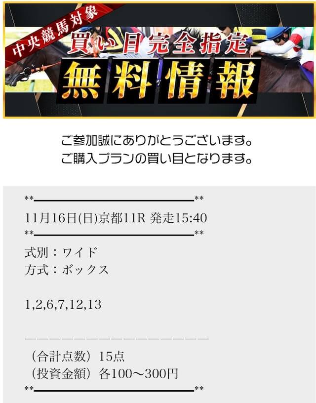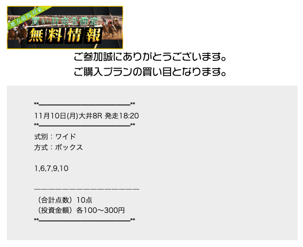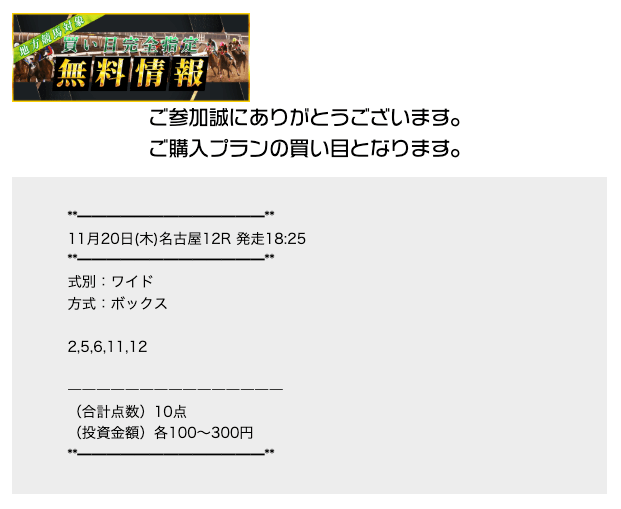 購入した情報で的中レースもあったのでこれからも続けていきます。