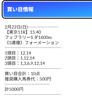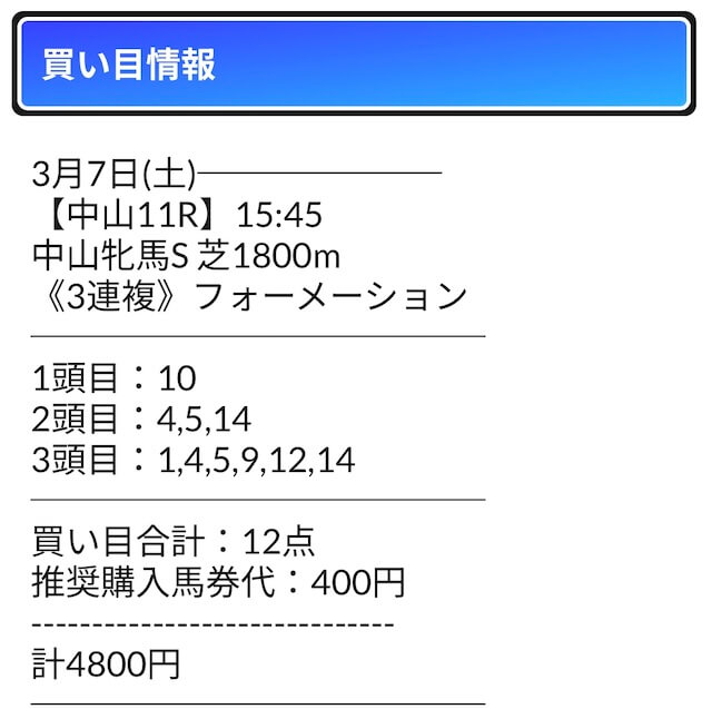 早速買い目を見ていきましょう。